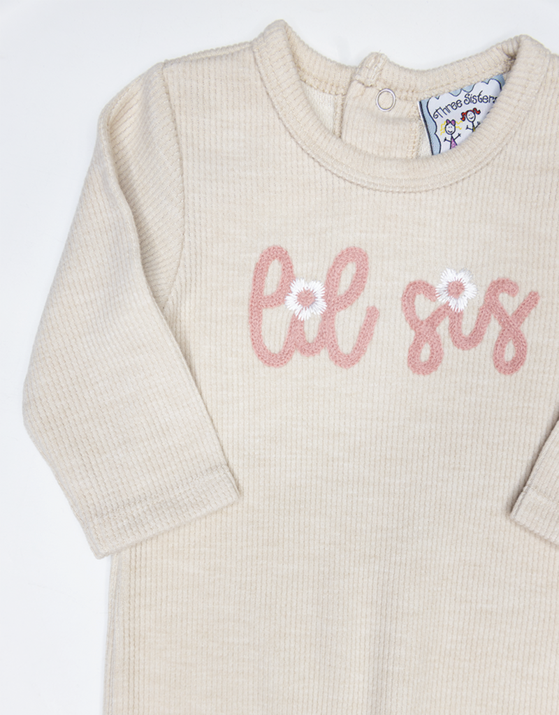Your little sister will love this adorable 100% cotton romper! Soft, comfortable, and oh-so-cute, it's the ideal gift for any lil sis who wants to look stylish and feel cozy all day long. Perfect for playdates, family gatherings, or just hanging out in style.
