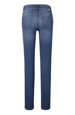 Parula is a super soft and stretchy mid-indigo wash with khaki stitching, light gold hardware, and authentic dry process through out.