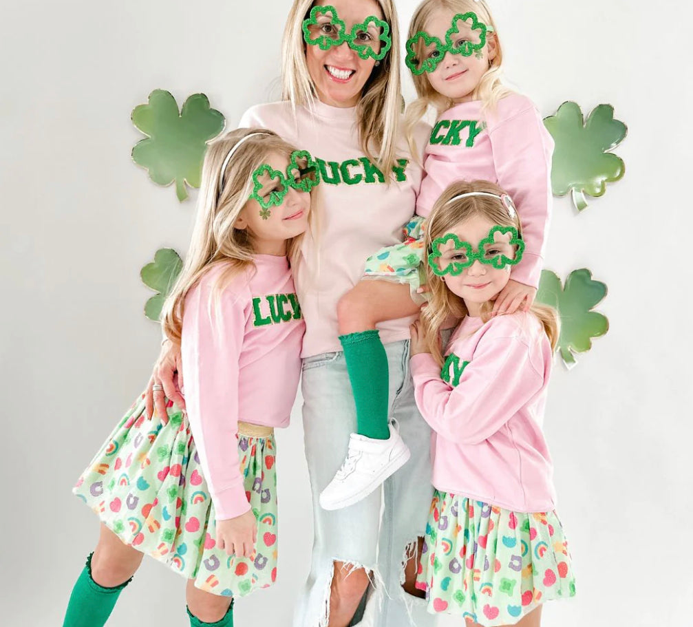 Lucky Patch Light Pink Long Sleeve Sweatshirt - Size 4