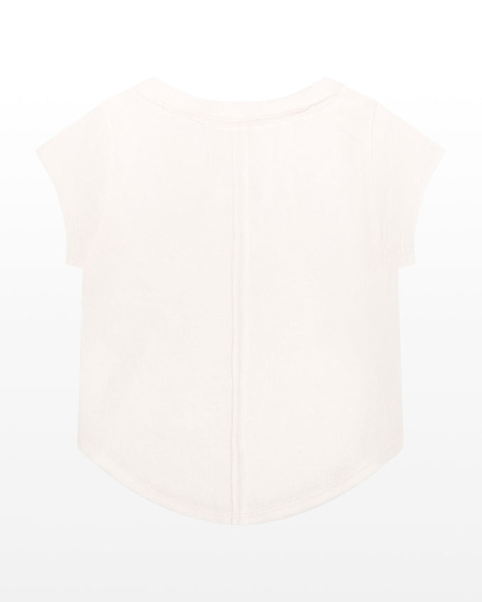 Ecru Rayon Rib Exposed Seam Cap Sleeve Baseball Tee