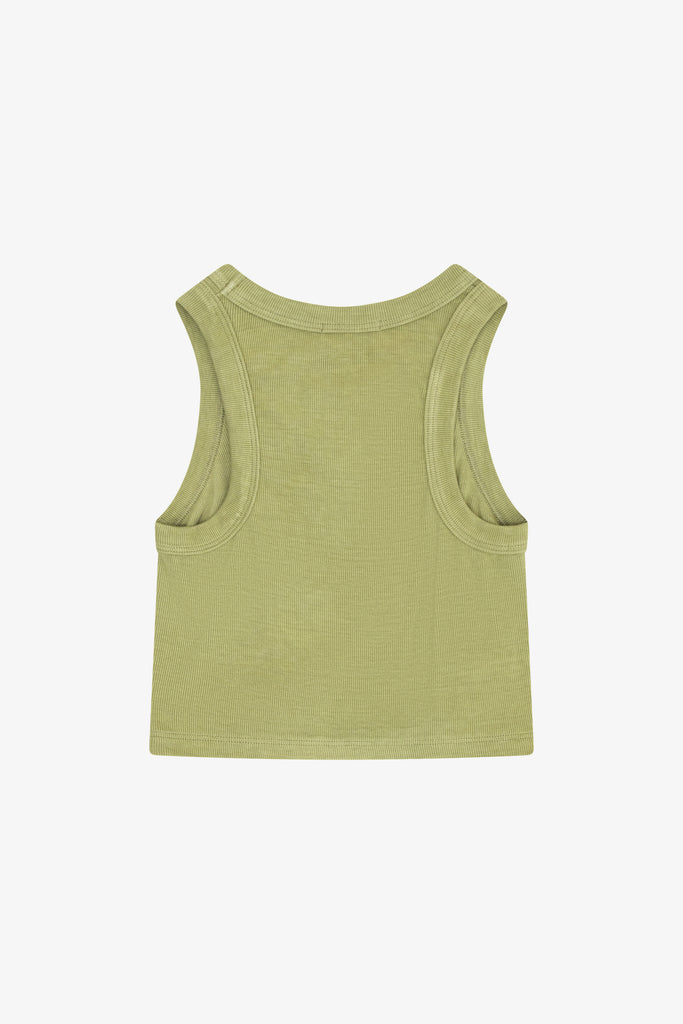 Matcha Tea Rayon Rib Shirred Sleeveless Tee