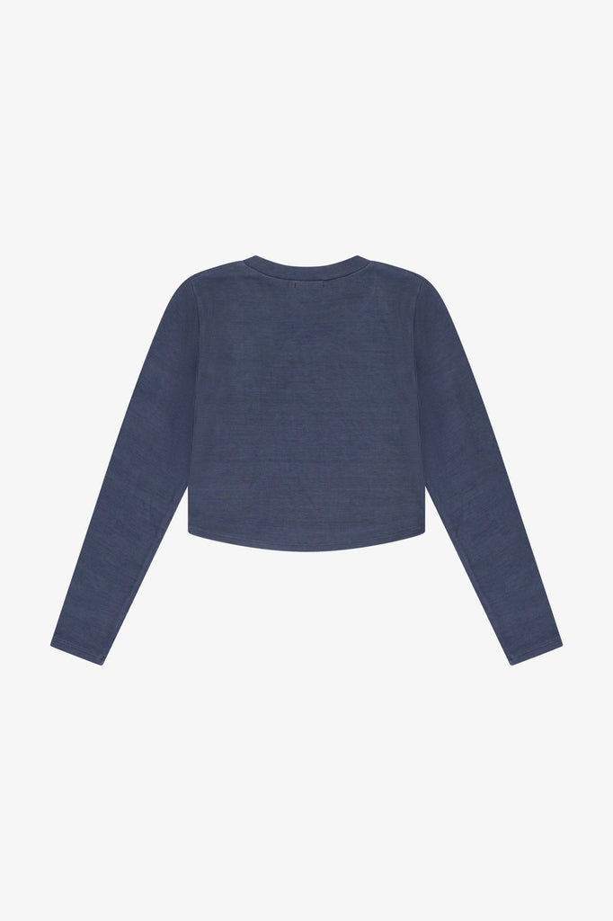 Stay cozy and stylish with the Rayon Rib Long Sleeve in Indigo Storm. Its soft, stretchy fabric flexes with all their moves, while the subtle lavender shade adds a fun, trendy vibe. Ideal for layering or wearing on its own, it combines comfort and cool effortlessly.