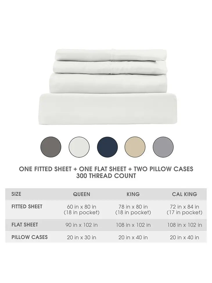 Features: Queen, king and california king size include 2 pillow cases, top sheet and fitted sheet