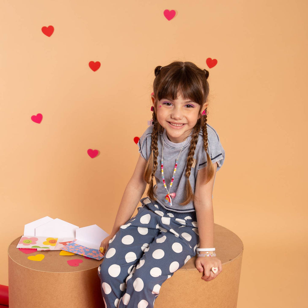These bright colors add fun to any outfit. Acrylic Beads and embellishments are strung on a satin cord to make this necklace a fan favorite!