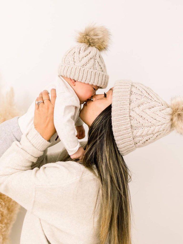 Oatmeal Pop Pom Pom Beanie Hat