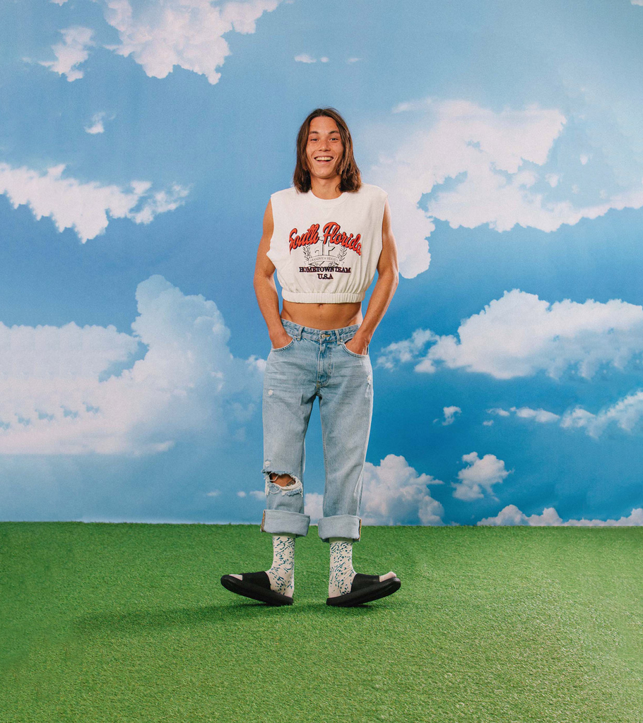 54,9% cotton, 28,4% polyester, 14,1% polyamide, 2,6% elastane