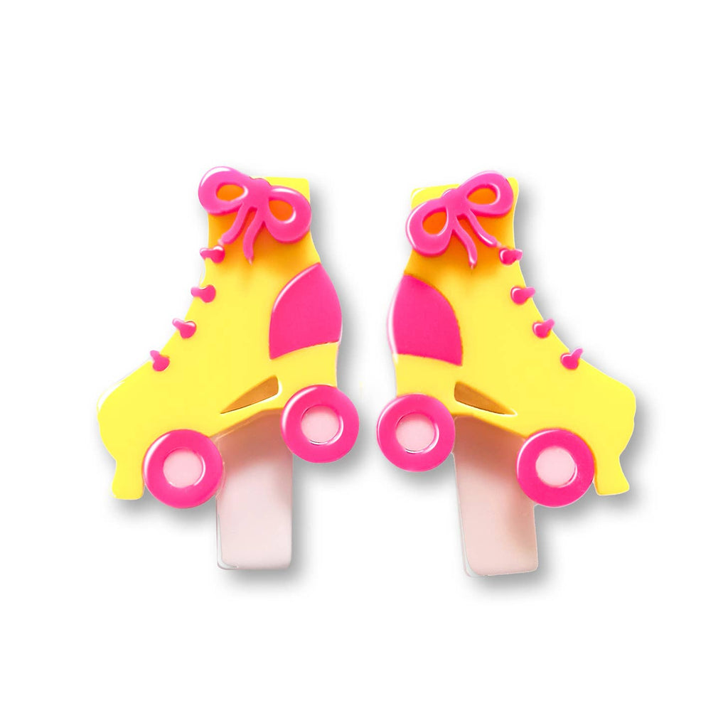 These bright roller skate alligator clips are a fun way to hold back hair! They are sold as a pair—100% acrylic charms. Iron alligator clip base.