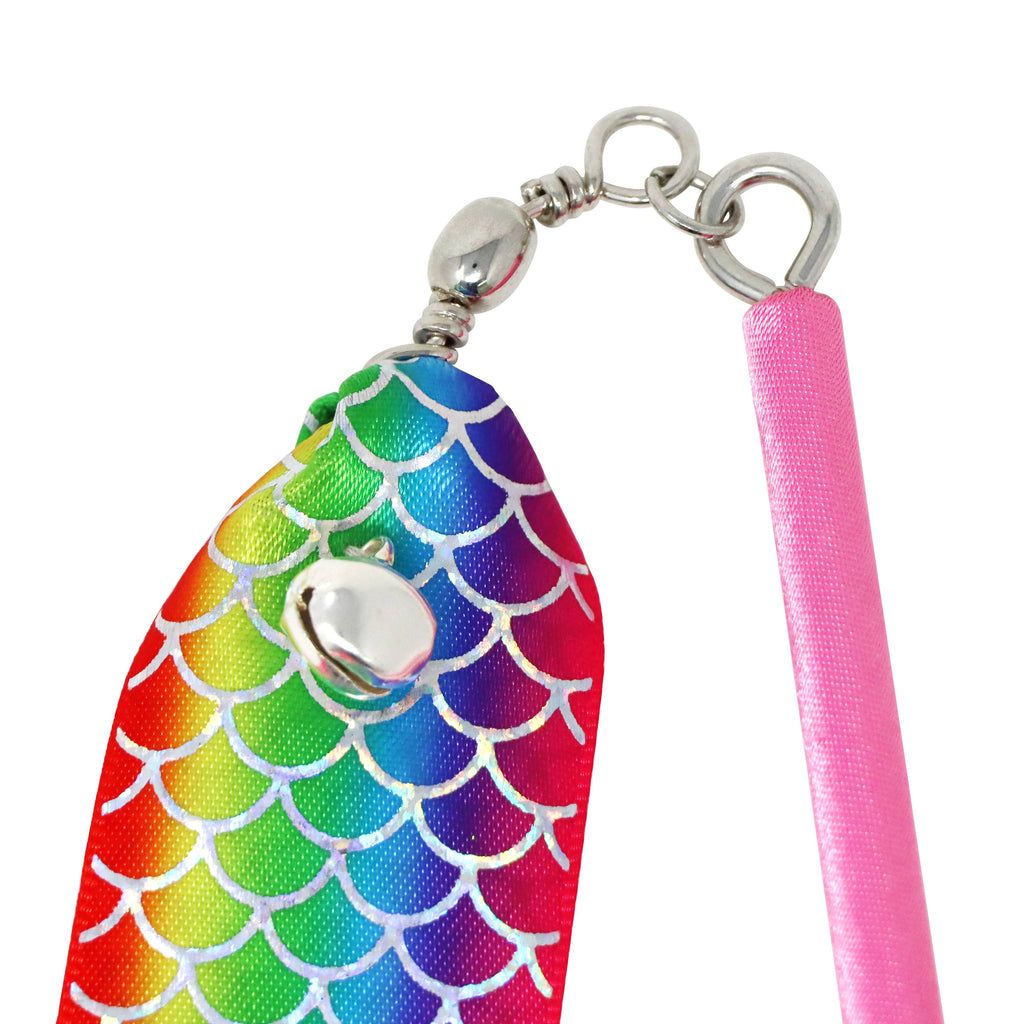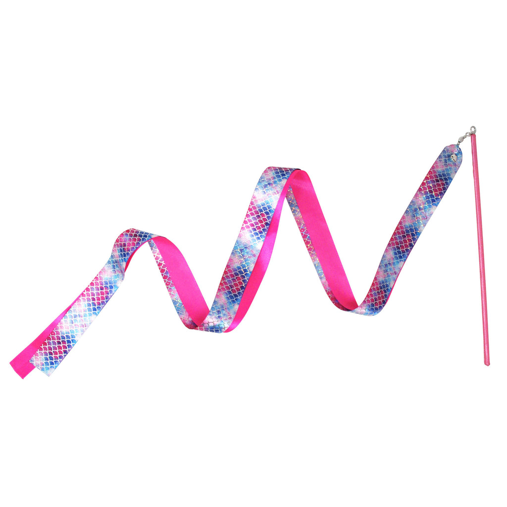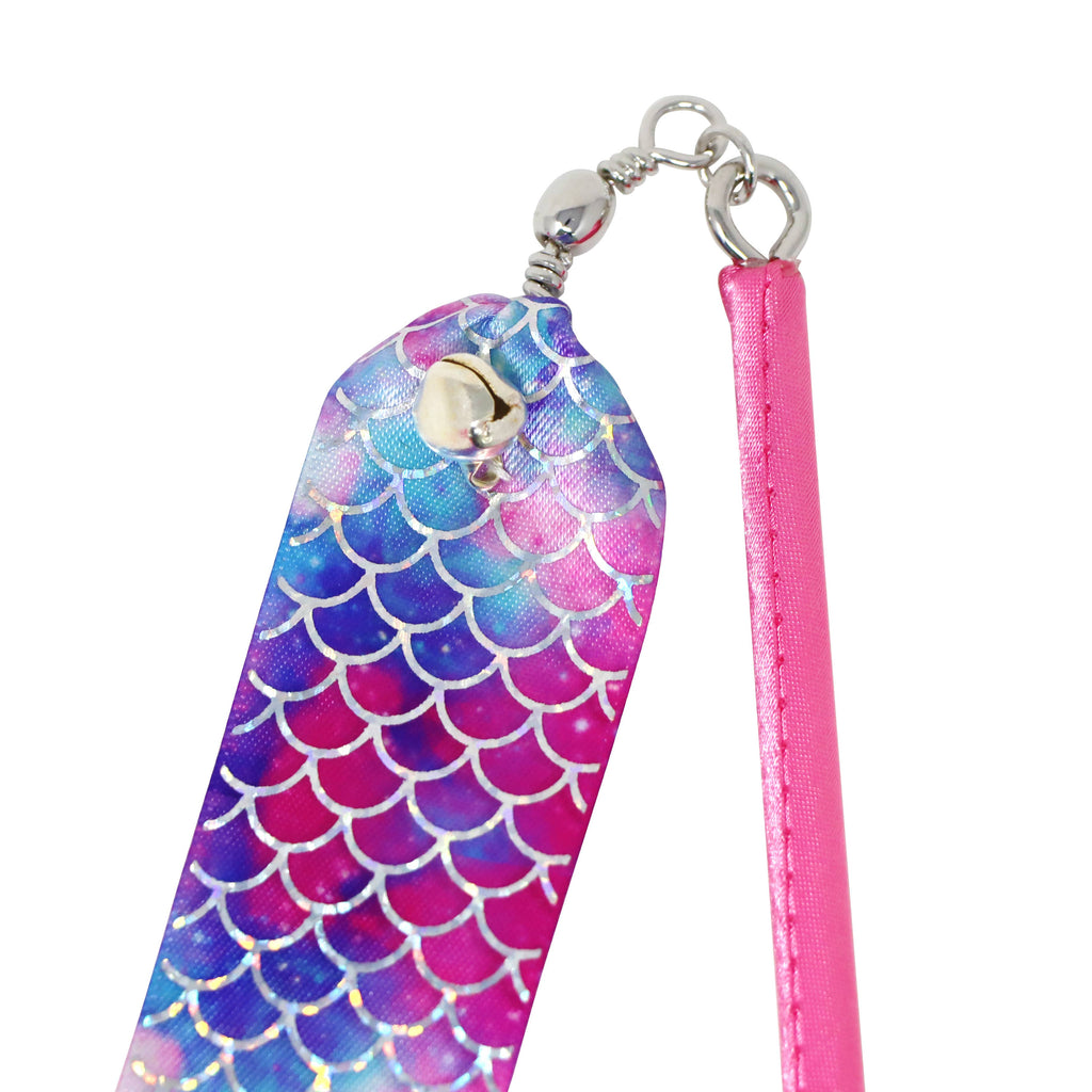 Mermaid Twirl & Dance Wand Mermaid Twirl & Dance Wand is constructed from a semi-flexible pink satin covered handle and contains 2 long satin ribbons. One hot pink ribbon and one mermaid scale ribbon so you can twirl mermaid magic around you! It features a swivel joint at the head so that the ribbons can twirl effortlessly without getting tangled and a small bell so you can dance in time to the jingle.