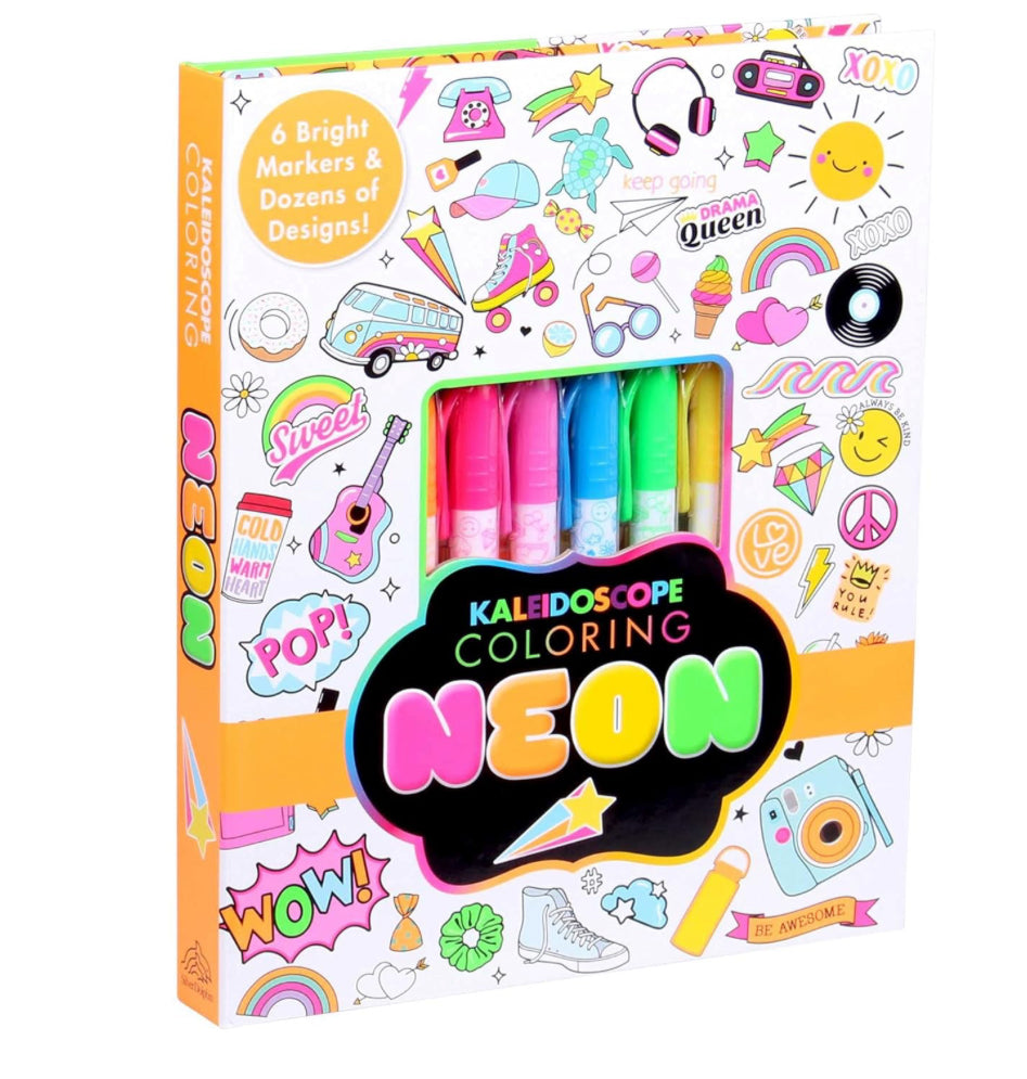 Let your creativity shine bright with the newest title in the Kaleidoscope coloring line, Kaleidoscope Coloring: Neon! Filled with on-trend illustrations of lovable llamas, cute cacti, and more, the 64 pages are waiting for bright and bold creativity. The kit comes complete with six neon markers that are perfect for filling in little details and large areas in need of some brightening up! The perfect gift for up-and-coming artists, this set will provide hours of calm coloring and creative expression with a fun neon twist.