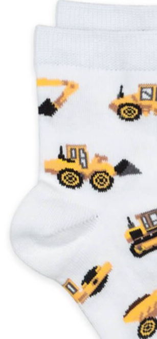 Boys crew socks with construction vehicles pattern knit into each sock. Classic colors that go with everything! Stay up rib top and knit with high quality cotton yarn makes these socks a must have for all little boys! Perfect for casual everyday wear. Choose your favorite!