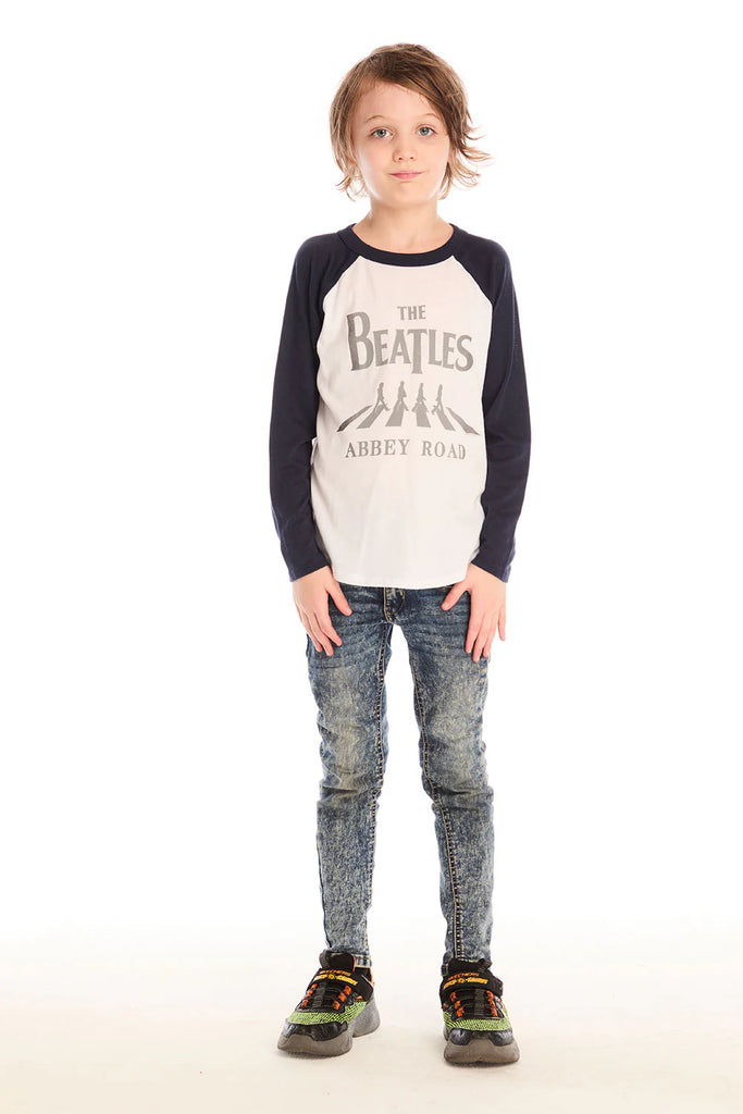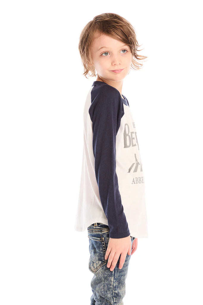 Celebrate his love for classic tunes with The Beatles Abbey Road long sleeve, featuring a sun-faded vintage design and retro contrast sleeves.