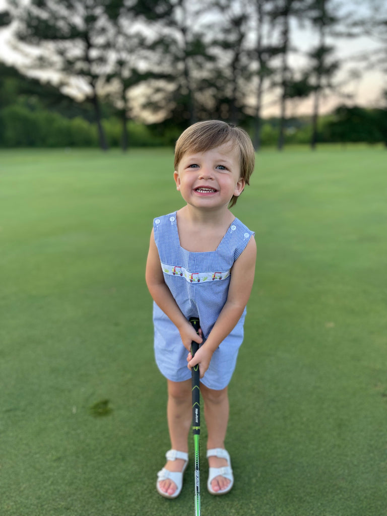 He's ready to Par-tee in this woven Jon Jon and everyone will love the custom golf cart embroidered ribbon!