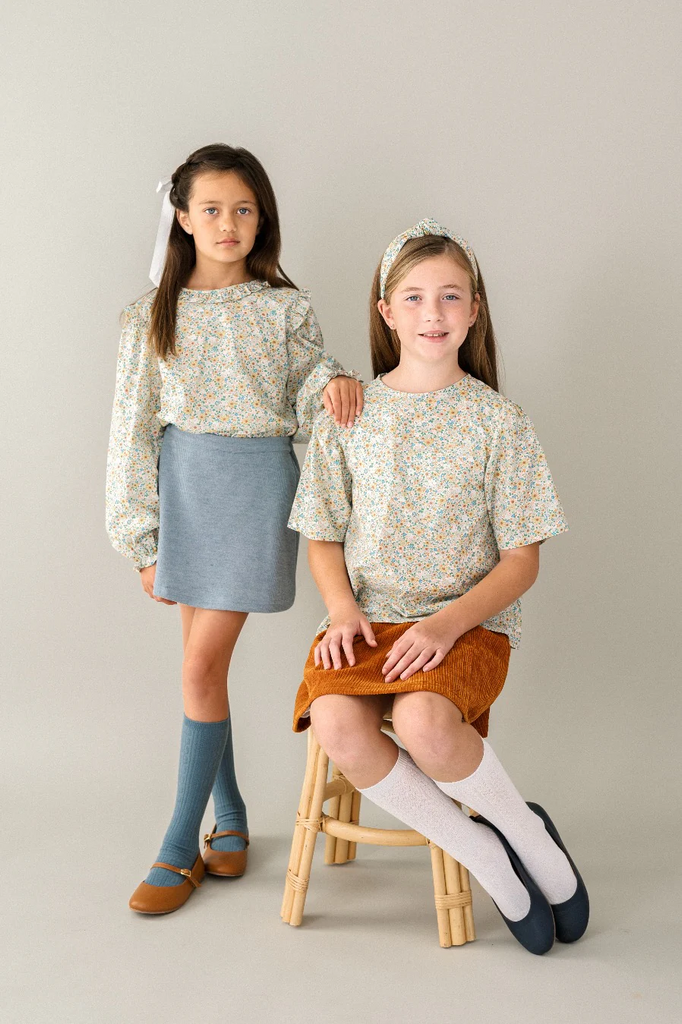 Discover the charm of classic style with the Sophie Skirt in Richmond Rusty Corduroy. This elegant skirt features a stylish pleated front that adds a touch of sophistication and movement. The waist is elasticized in back for a smooth fit. Crafted from soft, durable corduroy in a deep rust shade, it offers both comfort and timeless appeal. The versatile design pairs effortlessly with a range of tops, making it ideal for school, special occasions, or everyday wear. With its refined look and quality fabric, the Sophie Skirt is a chic and versatile addition to any tween's wardrobe.