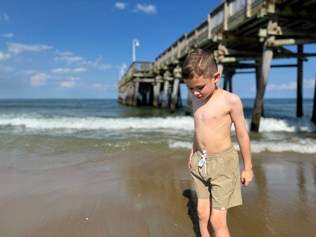 These swim shorts are great in the water or out! The fabric dries quickly making them an easy transition from wet to dry! They have a functional drawstring for a perfect fit at the waist and no lost shorts!