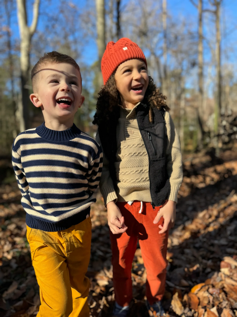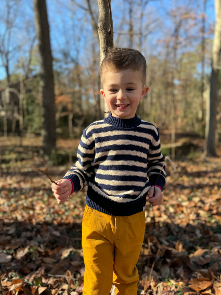 This sweater has soft weave and is topped off by banded cuffs, bottom and collar. *The cuffs do not have a red stripe on them as pictured in the second picture.