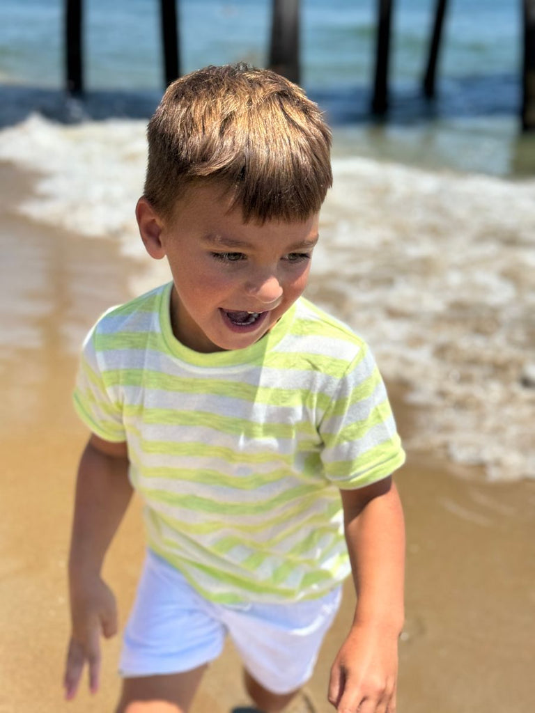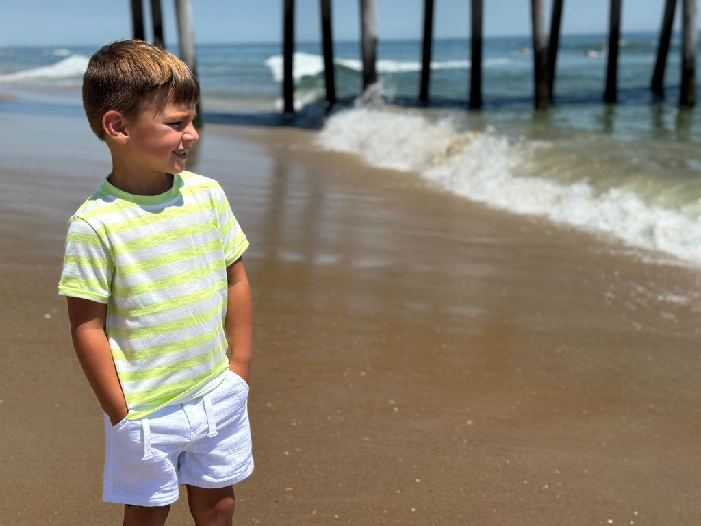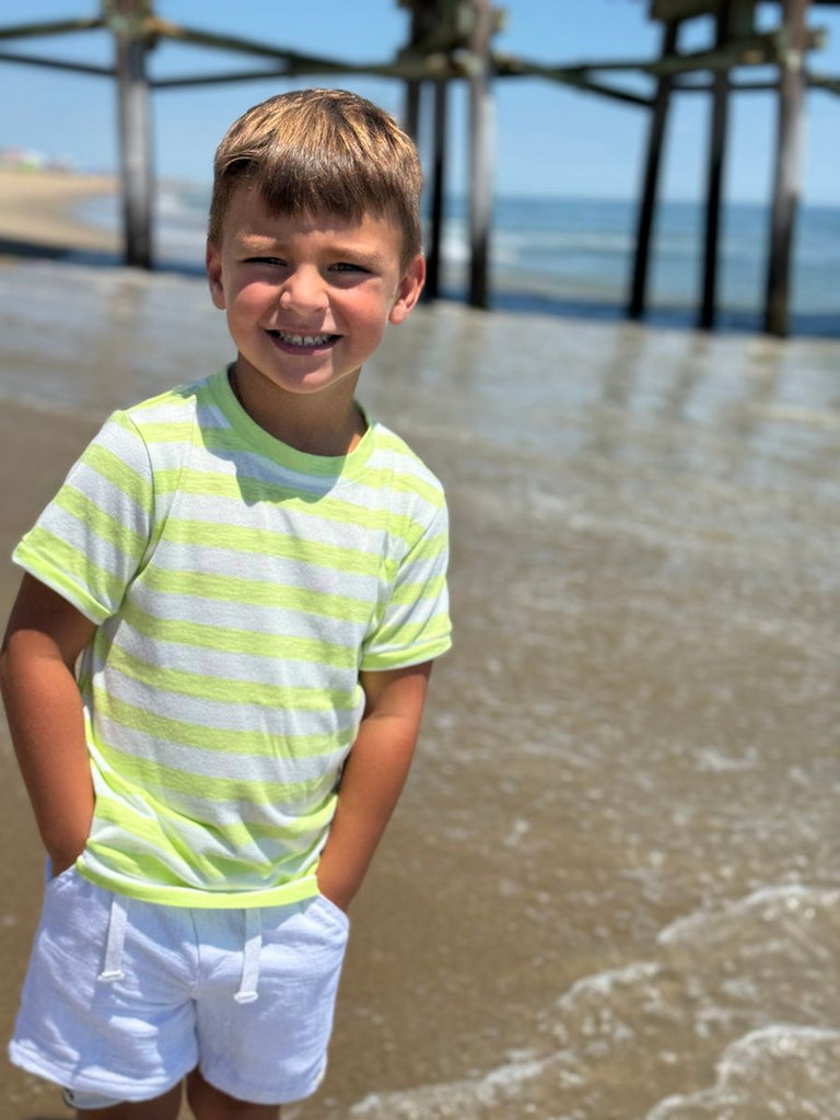 This tee will be his favorite for summer! The striping makes it a one of a kind!