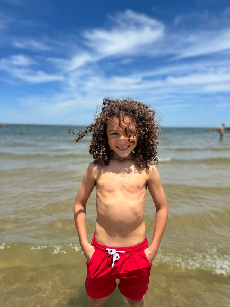 These swim shorts are great in the water or out! The fabric dries quickly making them an easy transition from wet to dry! They have a functional drawstring for a perfect fit at the waist and no lost shorts!