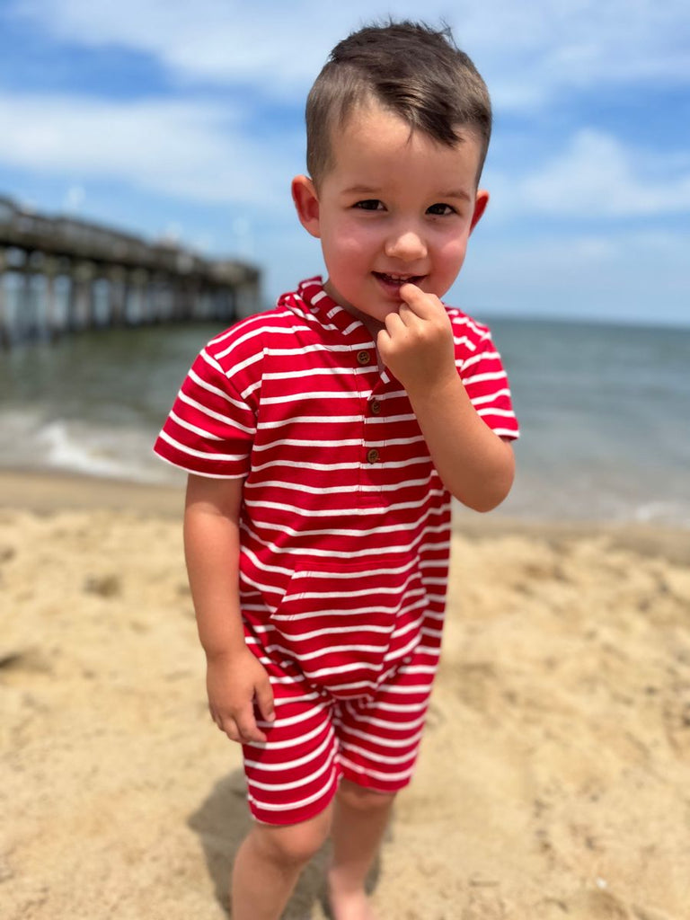 This soft cotton romper will be your go-to for outfits! The henley button placket and the hood give interest to this sweet romper. The fabric allows for all of the movement your little one wants! The leg openings have snaps for easy diaper changes.