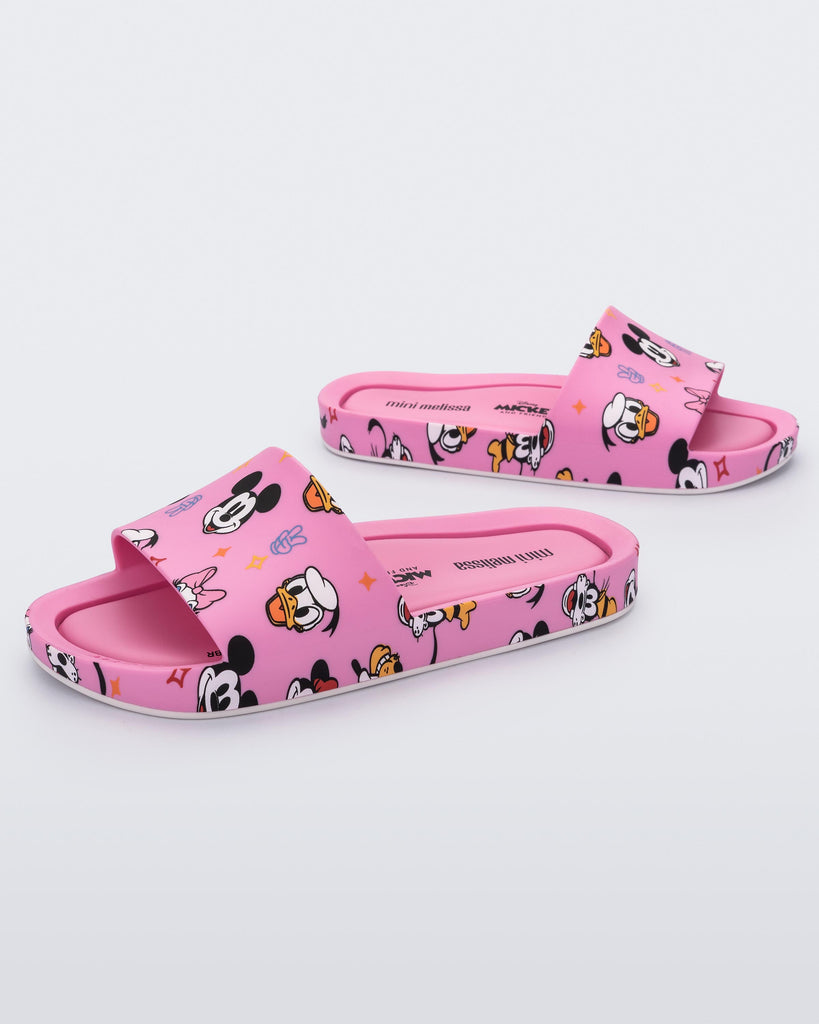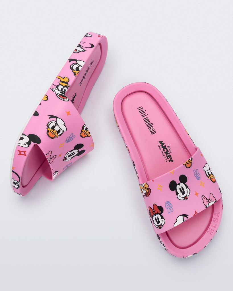Iconic and fun collab with Mickey and Friends now with new colorways! Characters color the classic Beach Slide in hot pink with Disney appliqués. Casual and authentic, it leaves the foot on display and is perfect for enhancing summer looks
