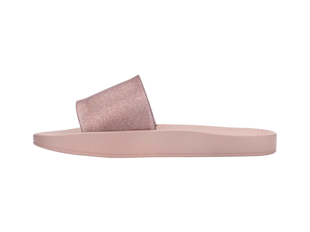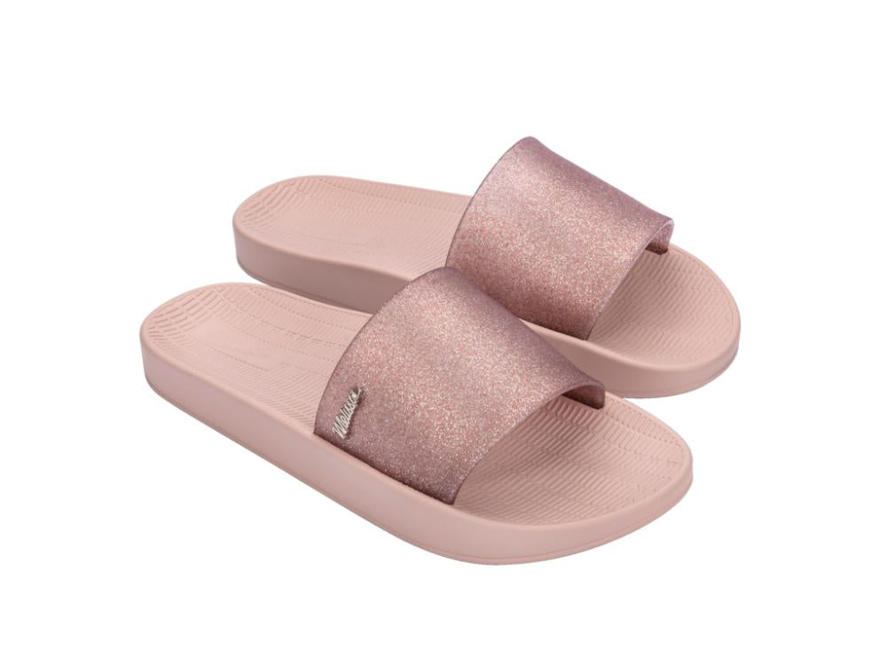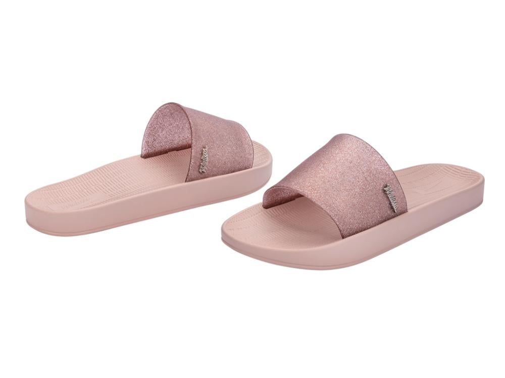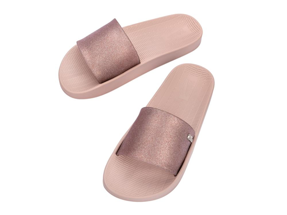 Take a sunset, and then make it metallic, and you have the new take on the Melissa Sun Sunset slide. With total California vibes, this beach-to-bar slide has a moulded EVA foam footbed that is safe for sand or street, plus the addition of glitter makes it all so much more LA.