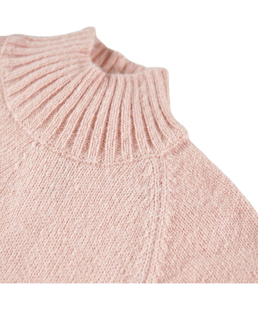 Rose sweater made of an alpaca wool blend. The sweater has raglan balloon sleeves, a high-neck ribbed collar, long ribbed edges around the sleeves and waist.