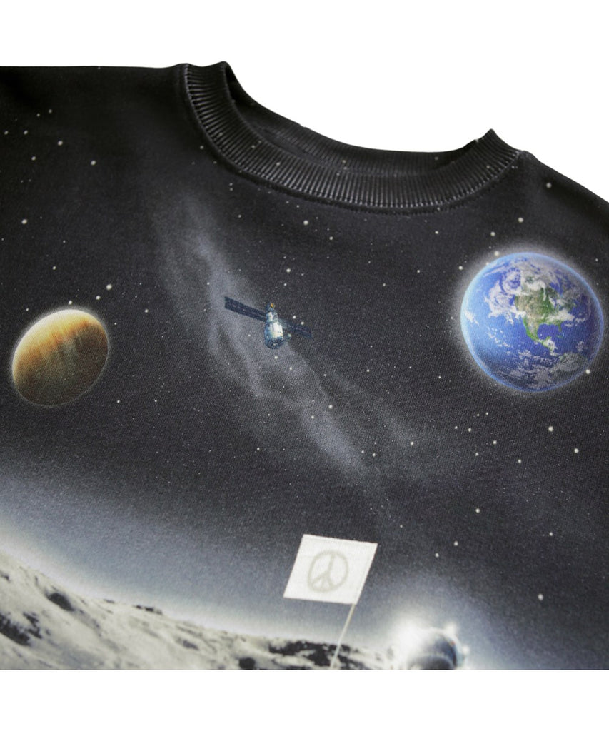 Sweatshirt made of soft organic cotton with a print of an astronaut on the moon. The sweatshirt has ribbed edges around the neck, sleeves and waist. The sweatshirt has a loose fit.