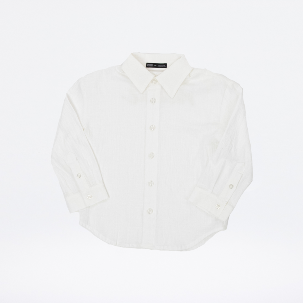 “Mini” White Woven Oversized Beach Shirt - Tween