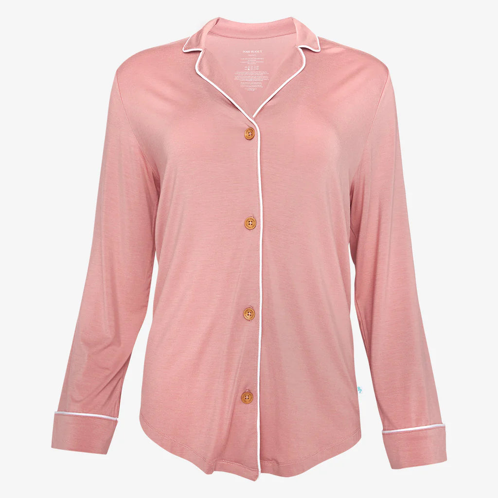 Dusty Rose Solid Long Sleeve Women's Luxe Loungewear Set