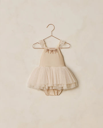 Shine in our Clementine Tutu, with a bow-appliqué leotard, full tiered tulle skirt, and adjustable ruffle straps—made for twirls, dress-up, and the most magical moments.
