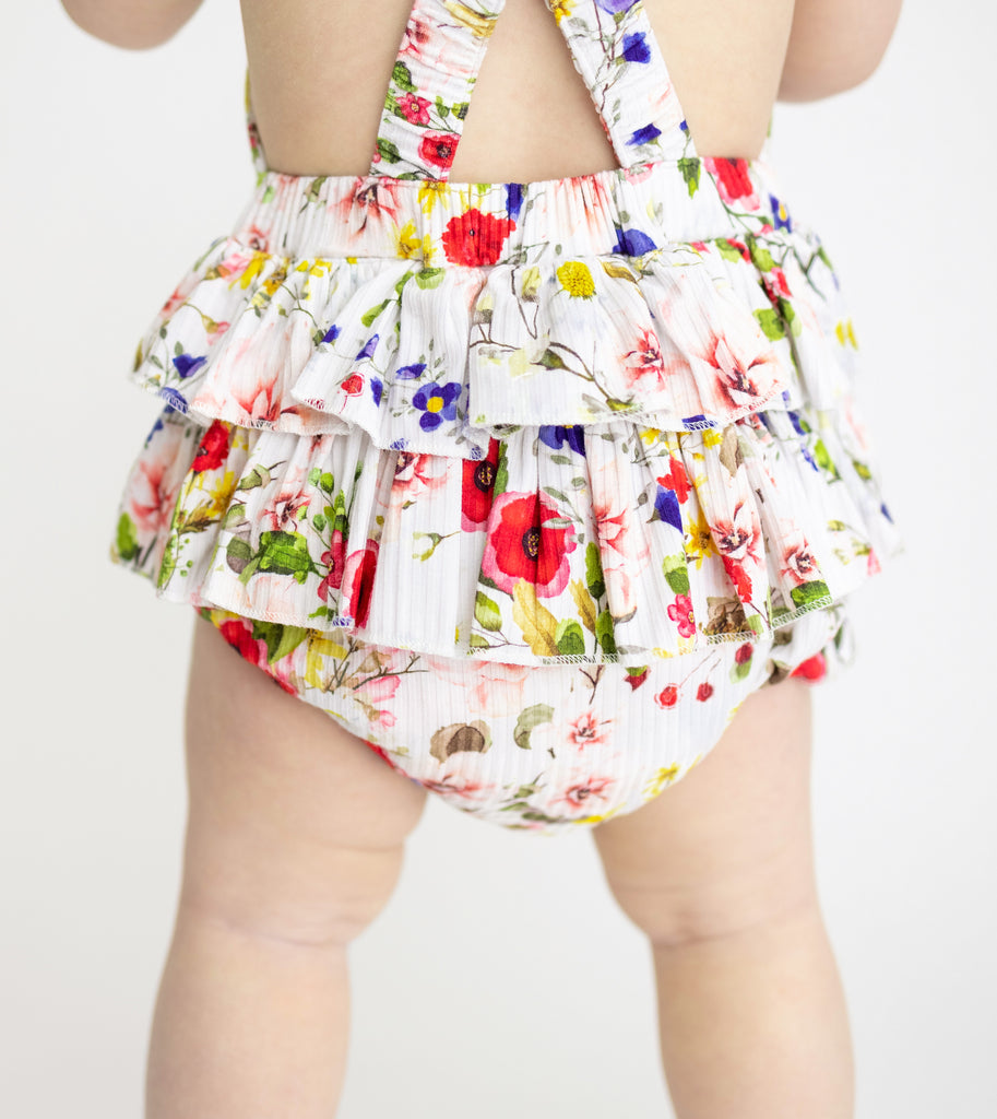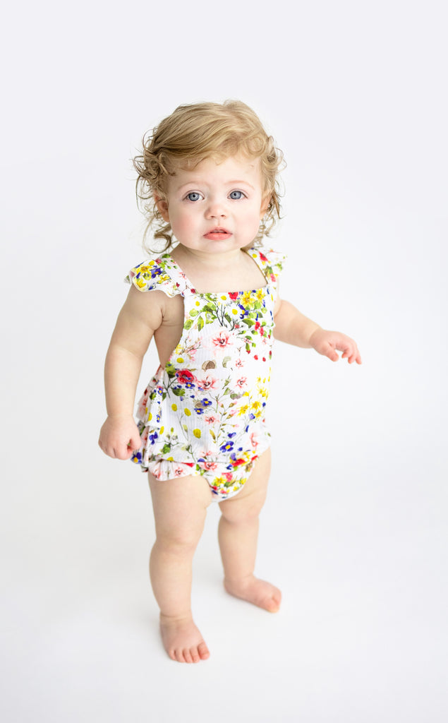 Sunny days are ahead with our adorable ruffled strap bubble romper! Lightweight and made buttery soft with our signature Päpook® viscose from bamboo, this summer outfit is comfy and oh so cute! Featuring an elastic back for an adjustable fit that grows with your peanut and a snap closure for an easy diaper change, this romper is a warm weather must-have!