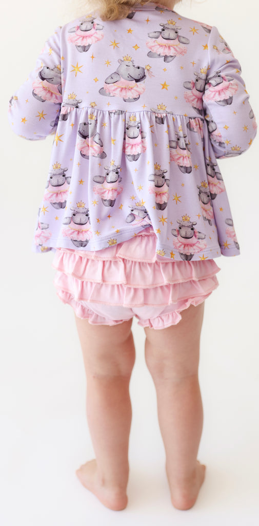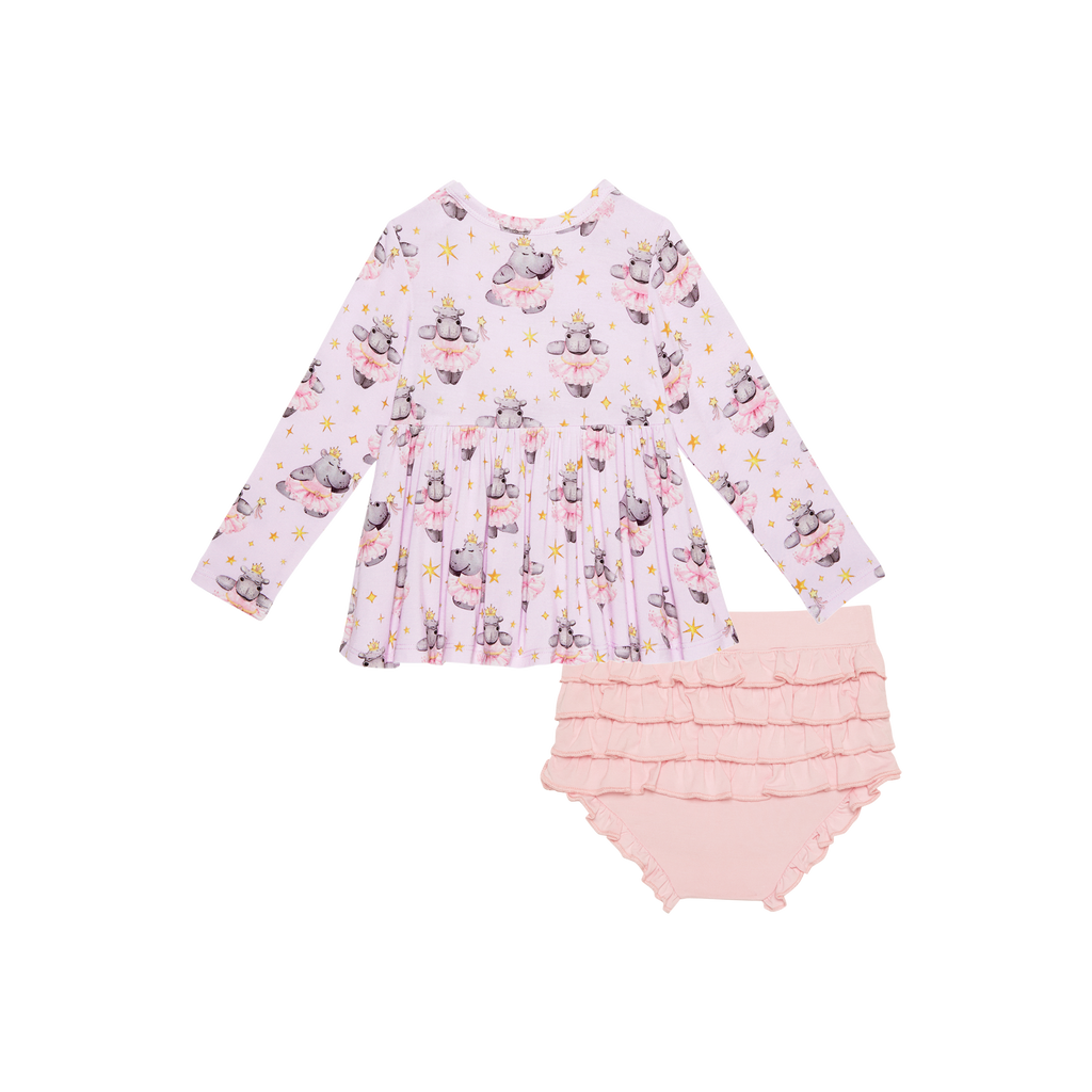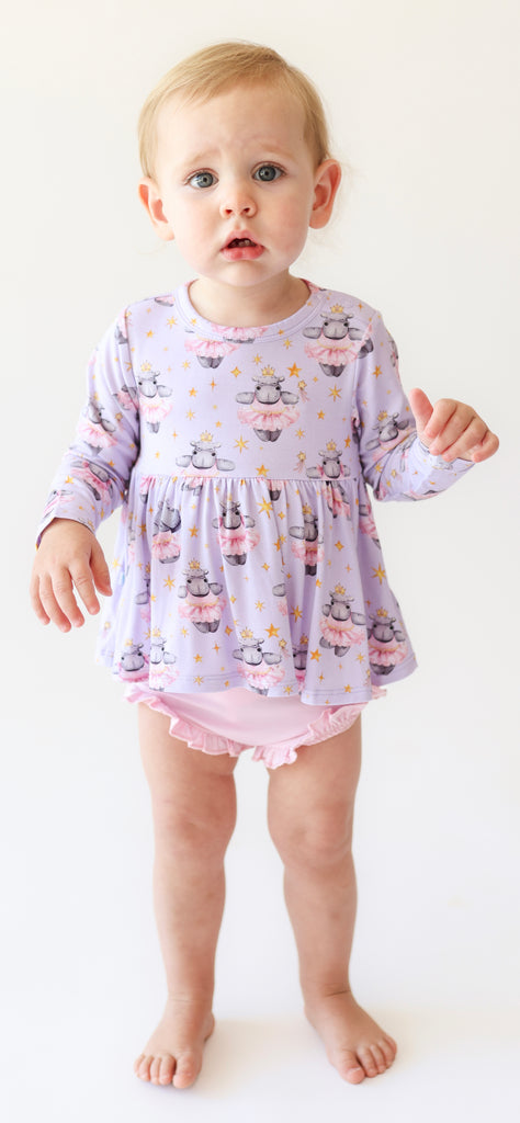 You will love the long sleeve peplum top with scoop neckline and ruffled bummies in our Päpook® viscose from bamboo. This 2-piece set is breathable and stretchy, making it the perfect warm-weather outfit. Mix and match with your favorite apparel from Posh Peanut®.