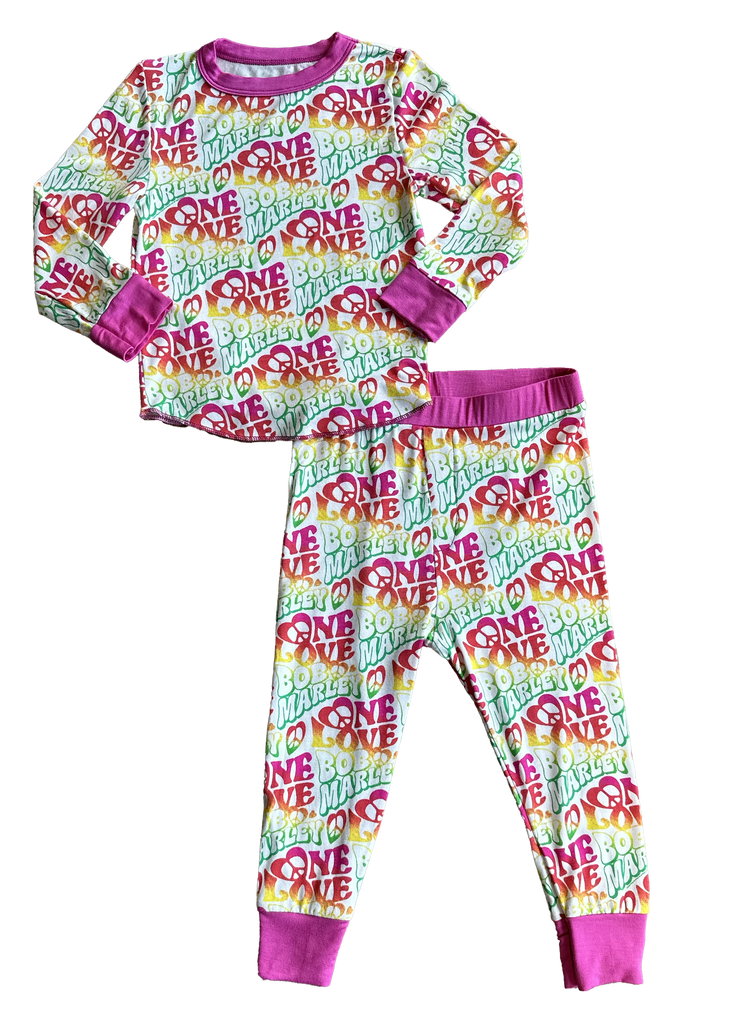 Our beloved long sleeve bamboo sets are back! One Love Lyrics with perfect pink trim, these are bound to be your kiddos new favorite!