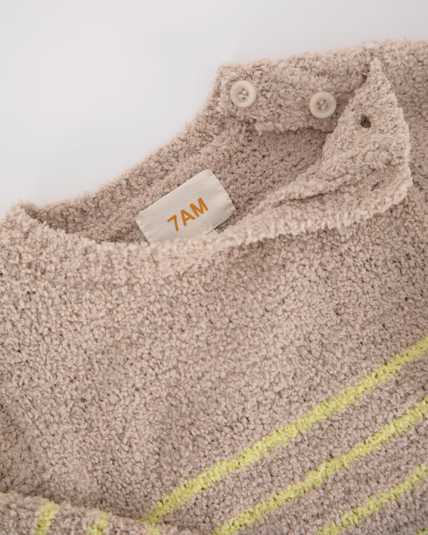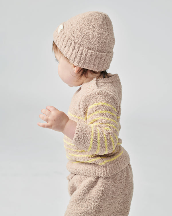 Our Long Sleeve Top will be the coziest addition to your little one’s winter wardrobe! The ultra soft fuzzy fabric made of 100% recycled materials, will have baby feeling the cutest in stripes. Designed to stay close to body with its soft fitted lookfor the utmost comfort. Not to mention, how easy it is to get baby’s head through the opening with the shoulder buttons to avoid any head tugging.