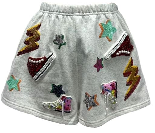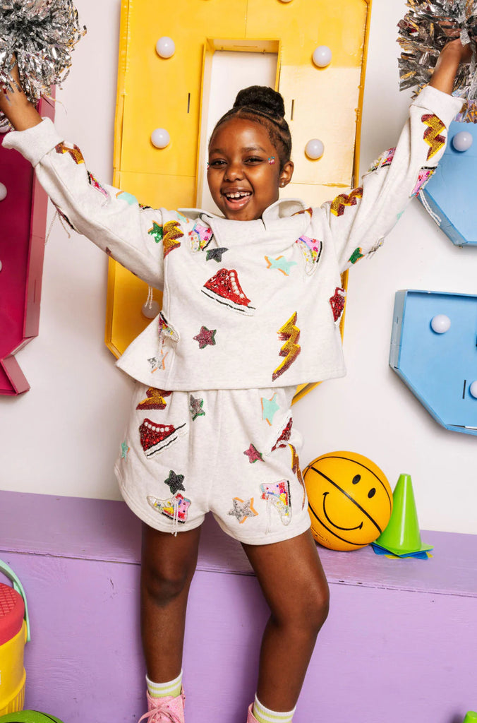 This light grey tween-sized short with set your sneaker game on fire! With its fun sequin sparkle appliqués on both the front, back - your girl is bound to have a good time! The waist is elasticized for a perfect fit! Pair it with the matching sweatshirt (sold separately) for her go-to outfit.