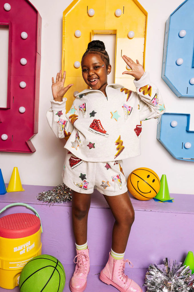 Queen of Sparkles Kids Grey Sneaker & Lightning Bolt Short