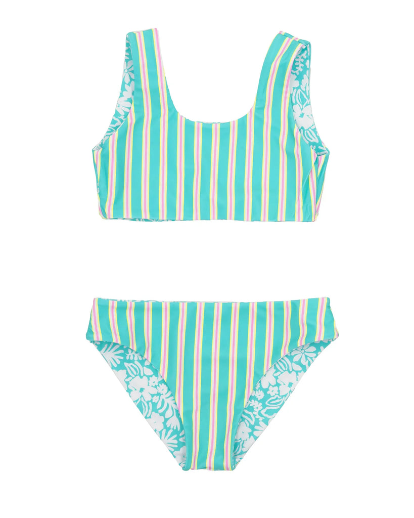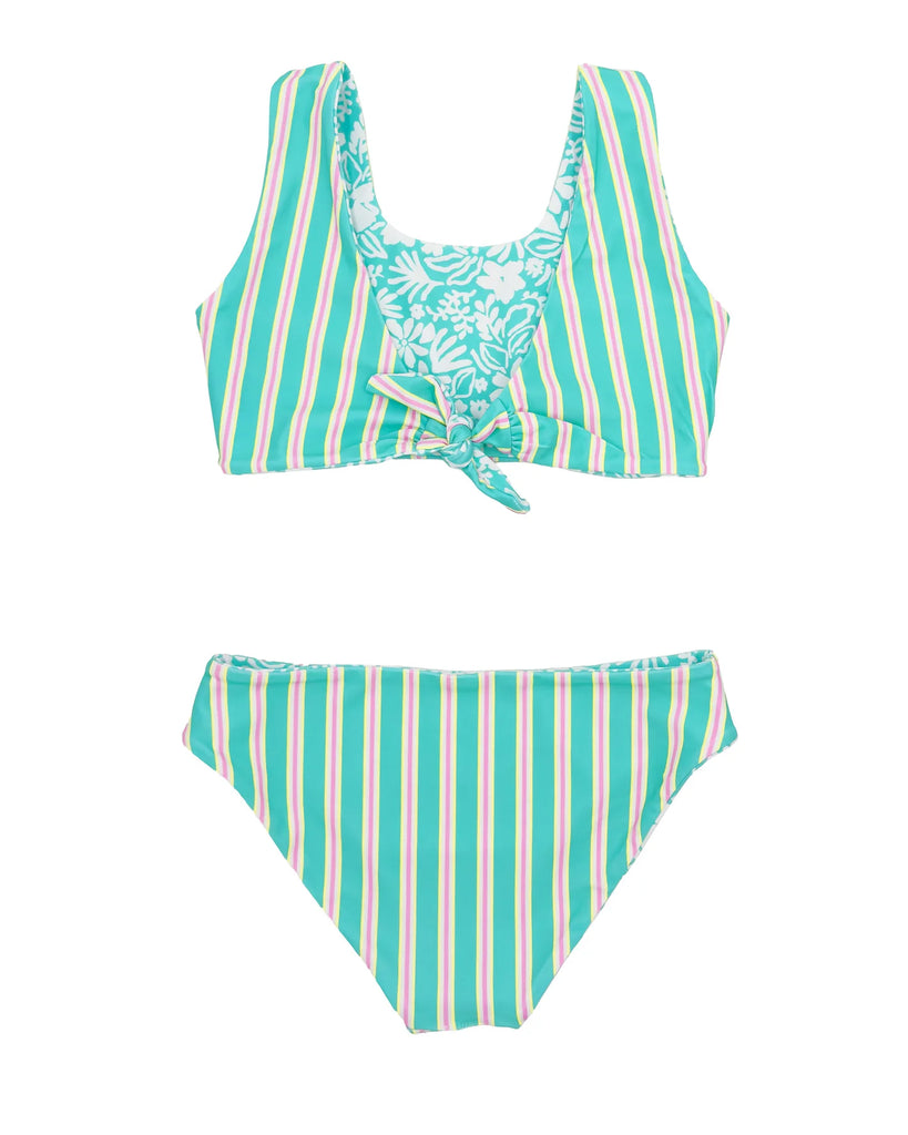 - Reversible bikinis that can be worn 6 different ways, prints are reversible and top can be worn tied in the front or back, double lined for extra support, matching print for the whole family.