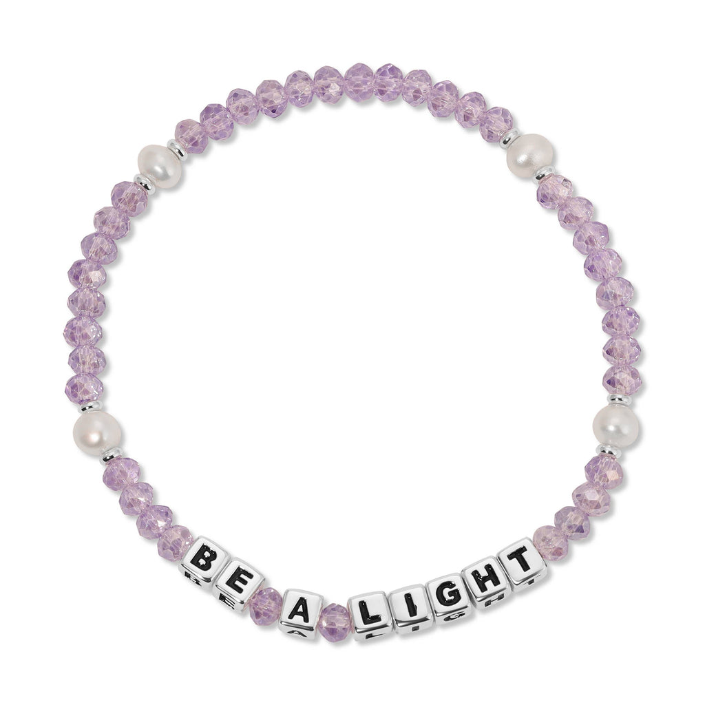Be a Light - Lavender and crystal & Pearl / Sterling Silver plated accents on a stretch cord.