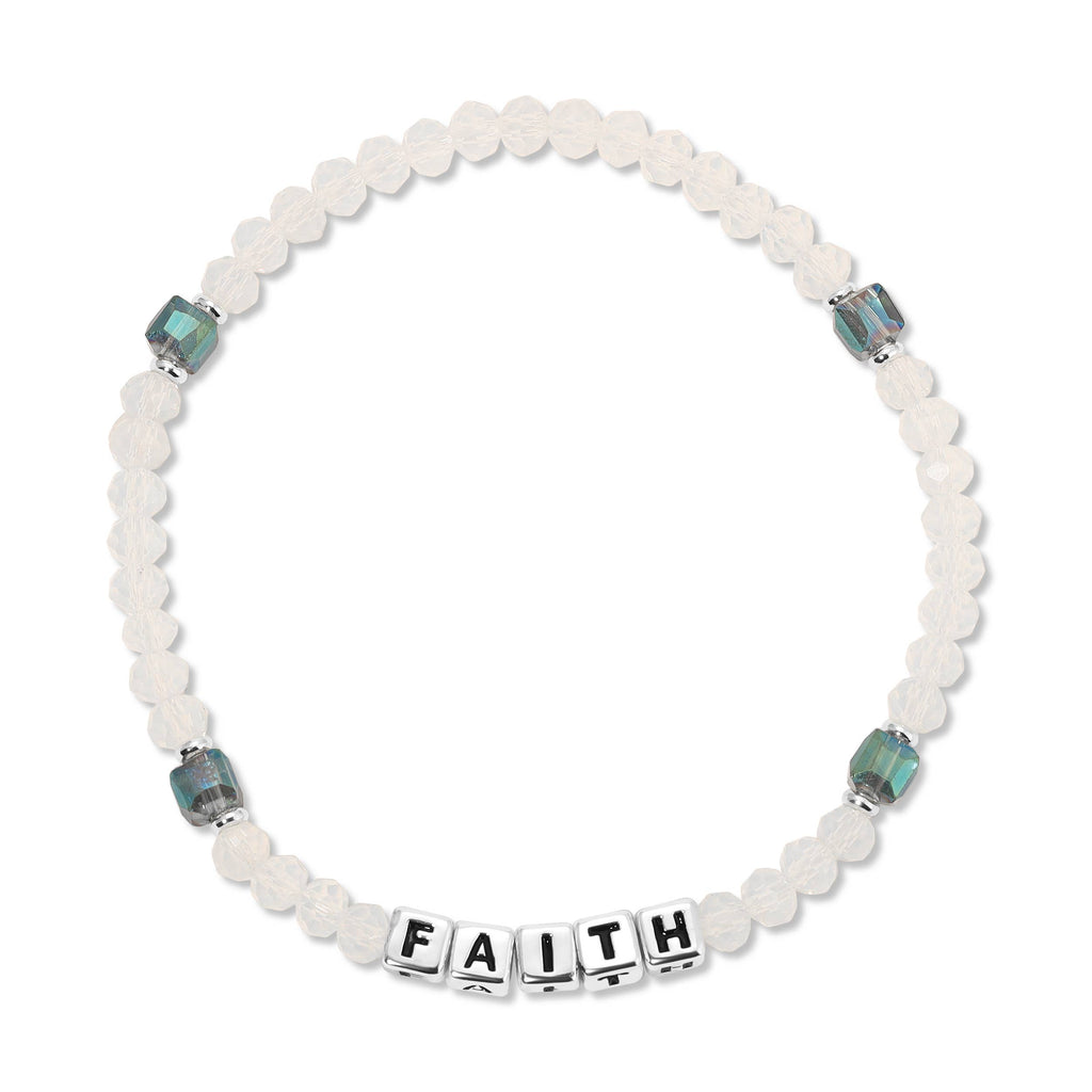 Faith Opal Crystal Beaded Bracelet with Silver Accents