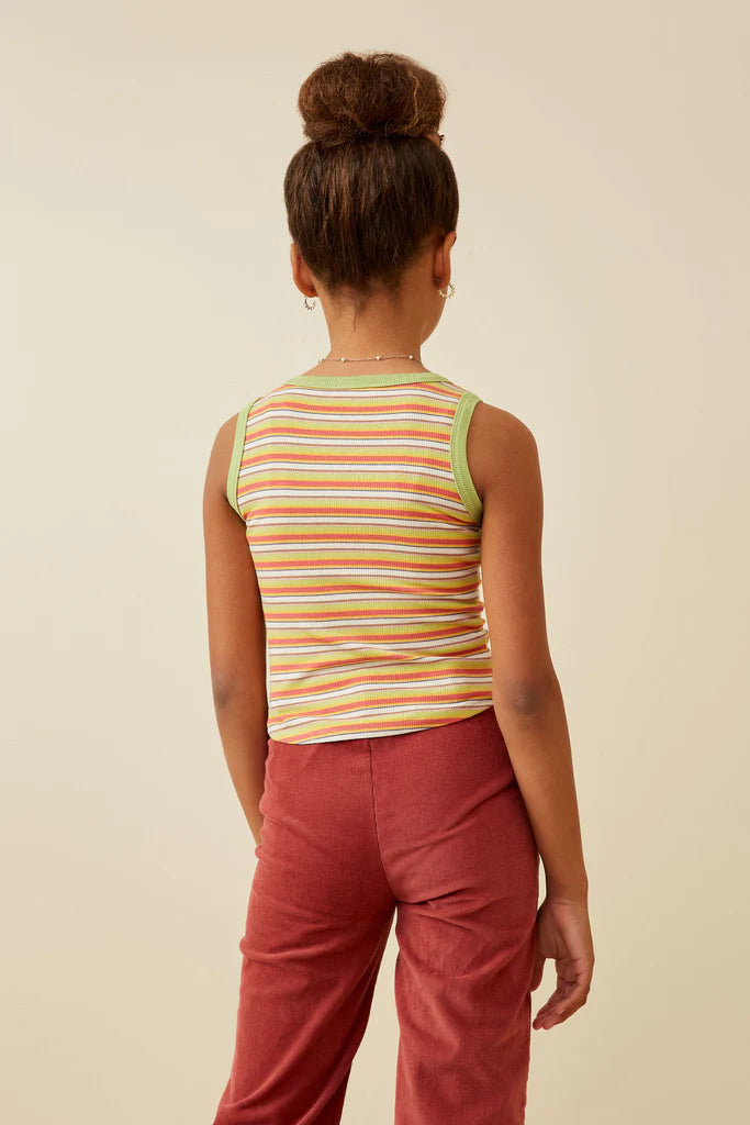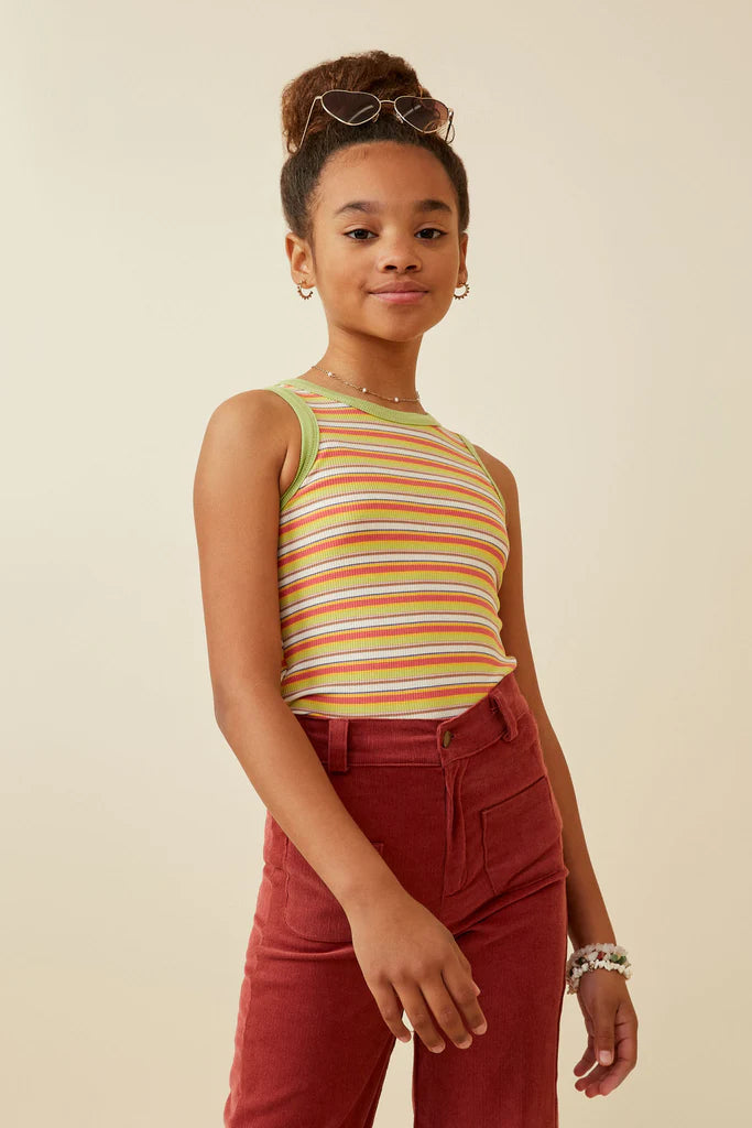 Our Contrast Binding Striped Knit Ribbed Tank Features: