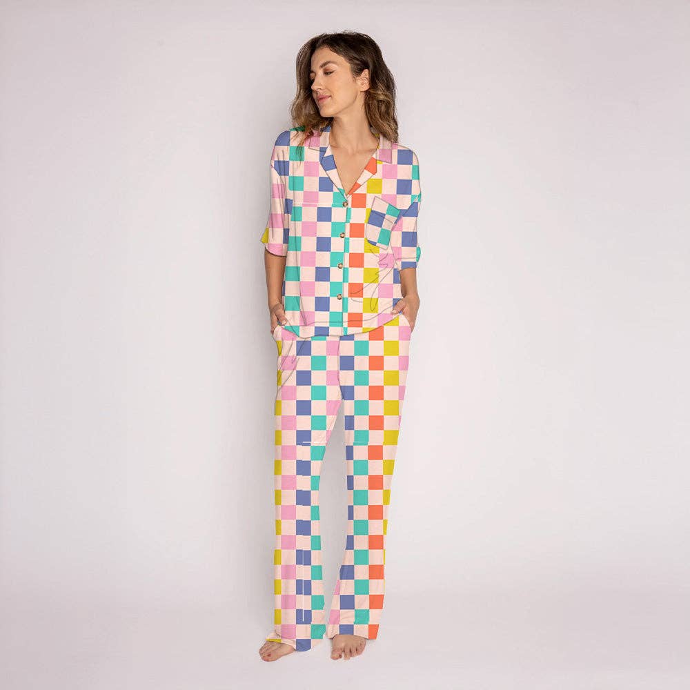 Get ready to elevate your loungewear collection with our Multicolor Checkered Women's Loungewear Pants Set! This two-piece ensemble features a cozy pair of pants, perfect for lounging around the house or enjoying a relaxing night in. Crafted from high-quality fabric, this set offers both style and comfort. The standout feature of this loungewear set is the vibrant multicolor checkered print!