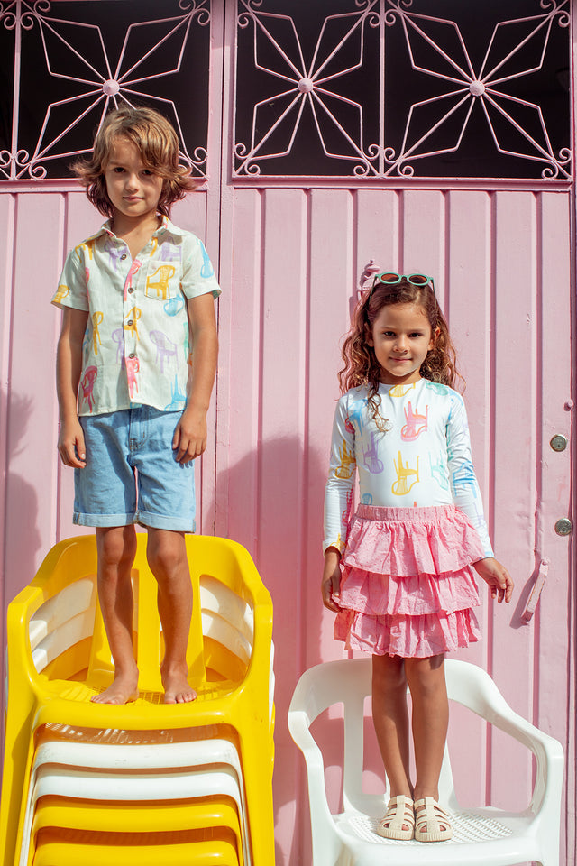 Our Guayabera is the perfect garment to complete your summer look! Made 100% in natural fiber, it is a very soft and breathable fabric to keep you cool. With short sleeves so our #HAPPYPEPITAS can move around freely, and with front buttons made of wood that give it a special touch! You will love it!