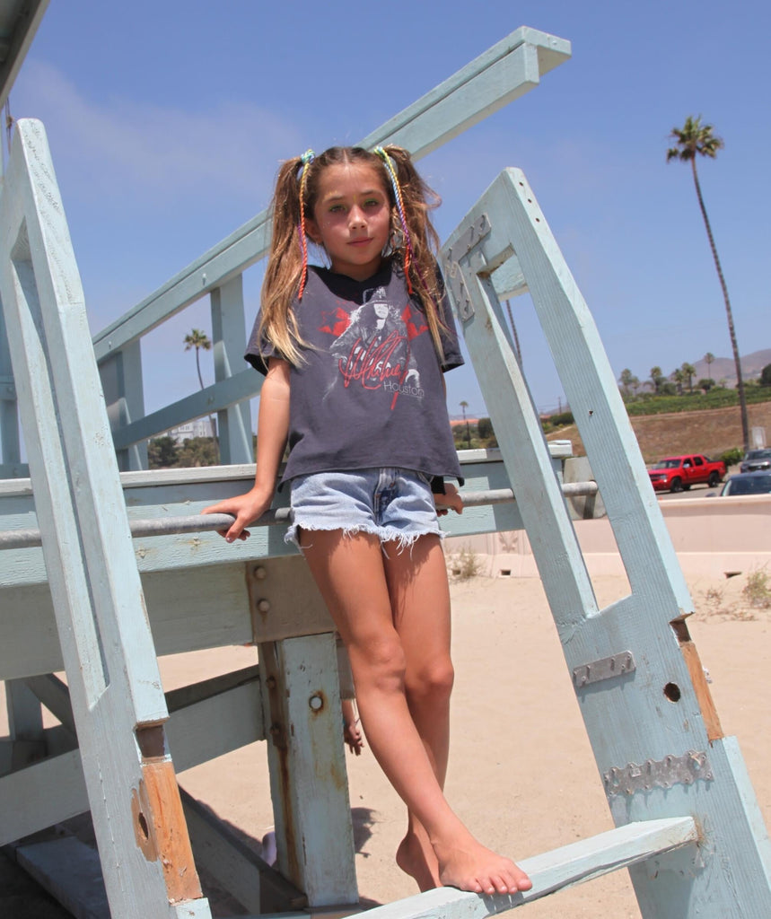 This cutoff tee gives the look and feel of that perfect rock n roll cut off customized look without all that dicey DIY work.
