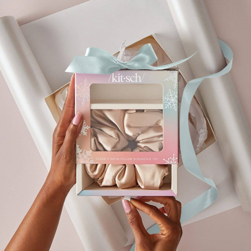 Champagne- Holiday Cloud 9 Satin Pillow Scrunchie - 1pc