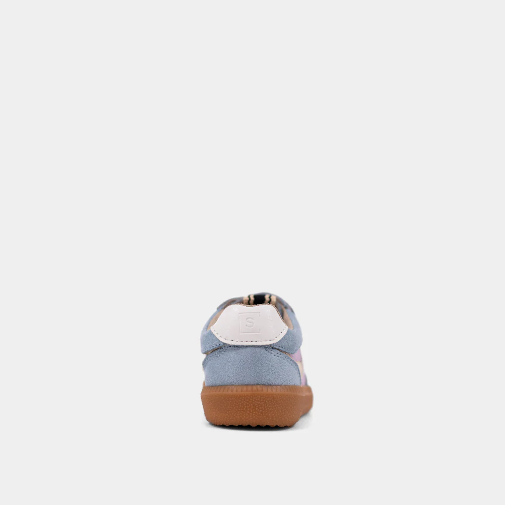 The SASHA MINI in Light Blue brings a fresh, modern look to kids' and toddlers' footwear. Crafted with soft light blue suede and breathable mesh, it's accented by pastel lavender faux leather stripes for a playful yet chic vibe. The durable gum rubber sole provides grip and comfort for all-day adventures, while toddler sizes feature velcro closures for easy wear. Finished with light gray laces and the signature "S" metallic tag, this style is also part of our "Mommy & Me" collection; perfect for stepping out in coordinated style with mom!