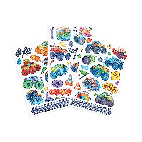 If you have something to say you can say it with Tattoo-Palooza. Monster Trucks temporary tattoo set comes with 3 temporary tattoo sheets; that’s over 50 tattoos in a set! This tattoo set is full of ice cream monster trucks, taco trucks and so much more. Tattoo-Paloozas are easy to apply and last up to 5 days and are easy to remove. Non-toxic.