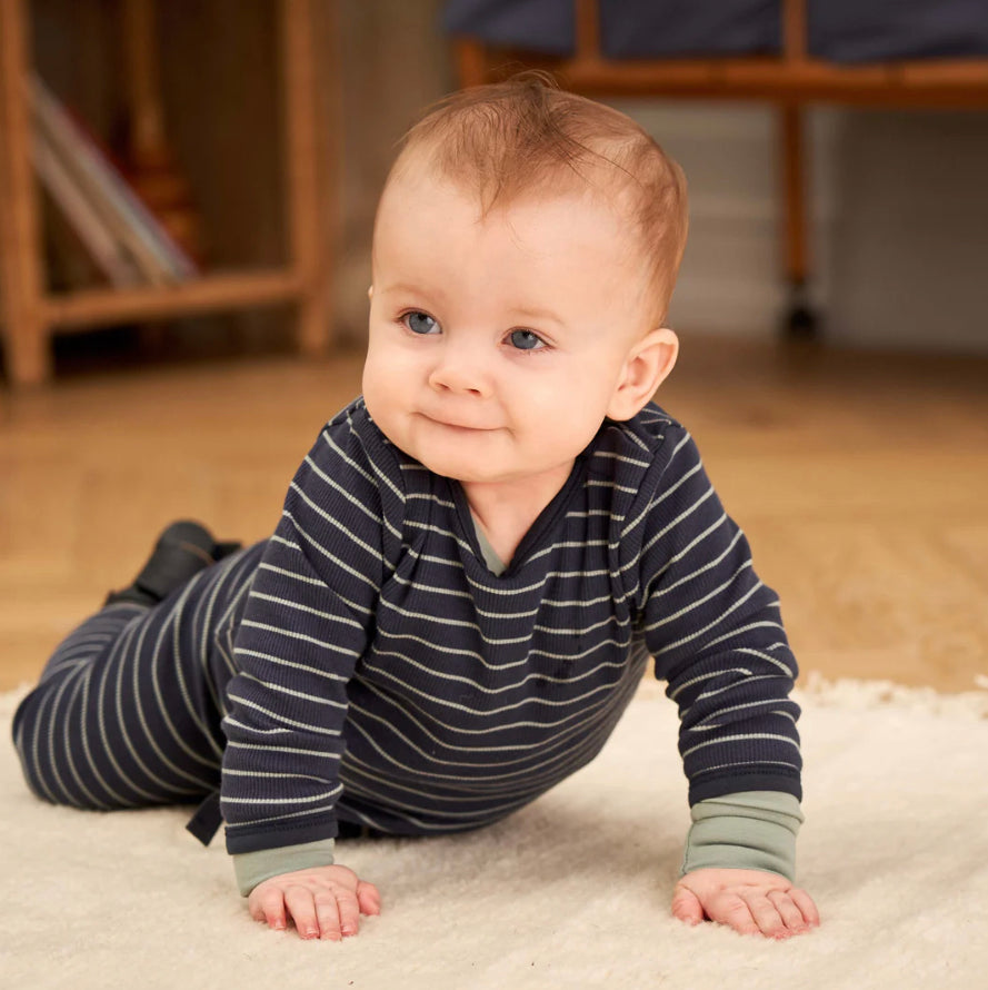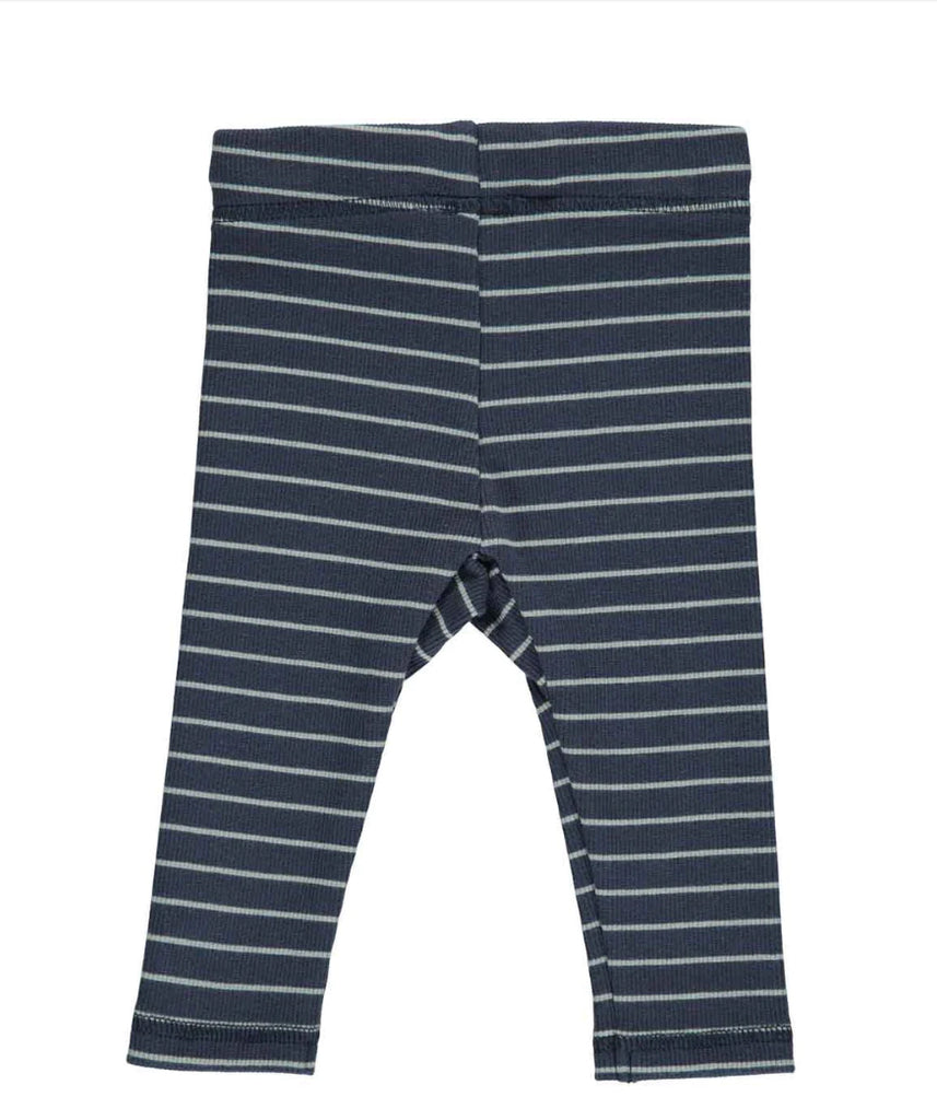Night Blue/Spa Green Stripe Rib Organic Cotton Baby Pants - Size 12-18M
