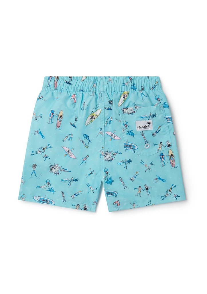 Enjoy fun times with Boardies® kids "Sea Folk" swim shorts, featuring a hand drawn ocean scene with many details to find.