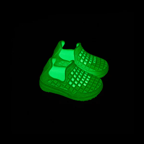 Charge your shoes by placing them in direct light to experience the glow. Solar Glow only takes a couple of minutes to reach full charge. Avoid high heat or prolonged exposure to prevent shrinkage.
