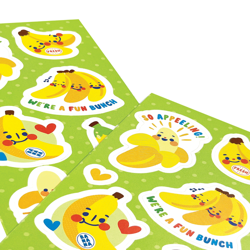 "Between the adorable expressions and the fun quotes, these banana sticker sheets from our Stickiville collection are serious about being playful. So go ahead and add the “we’re a fun bunch” to your notebook, the “so appealing” to your lunch box, and the “everything’s all ripe” to your journal, because all school and office supplies are made better when they’ve got a banana pun stuck to them!