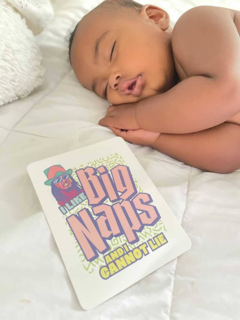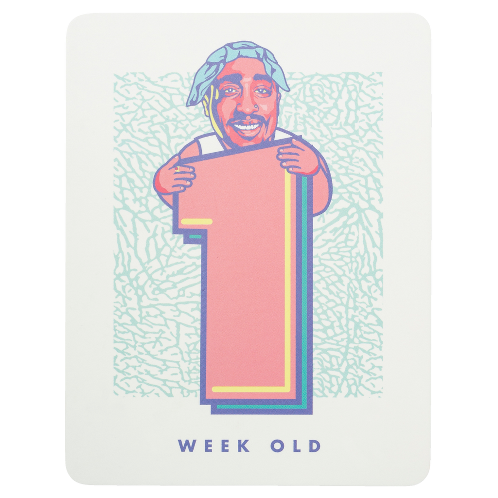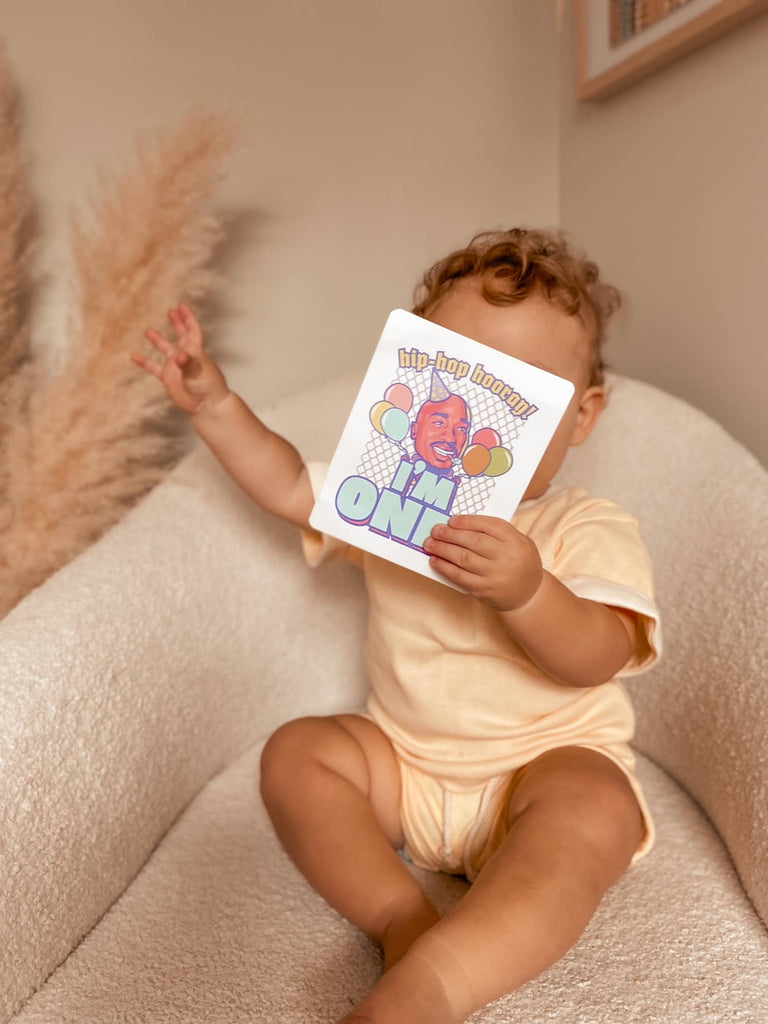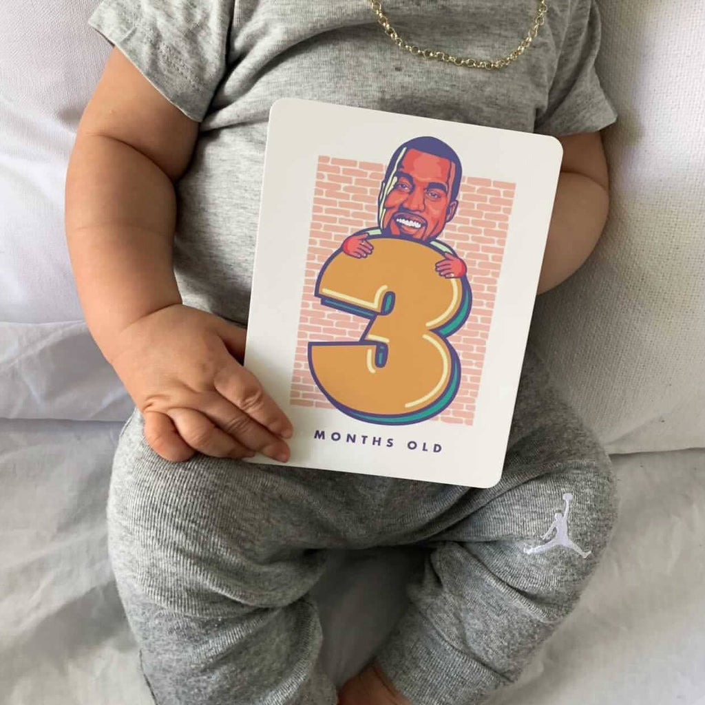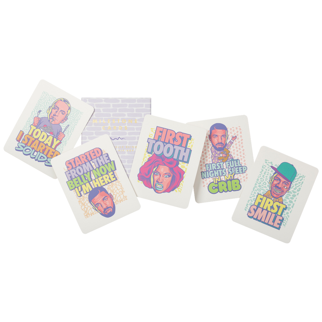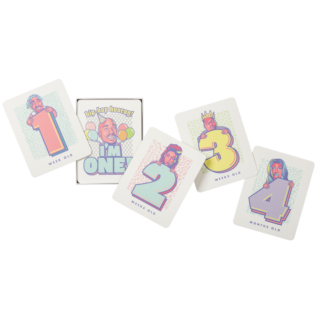 30 Custom designed hip-hop inspired baby milestone cards in a fun gender neutral palette with rounded corners.